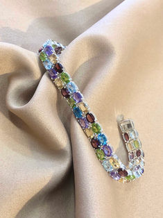 Ceylon Semi precious stones mounted on sterling silver Double line Tennis bracelet | L 6.8”