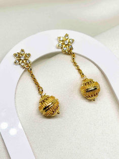 Gold plated Filigree bead hanging earrings | L 4cm,Ear stud | 3mm
