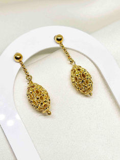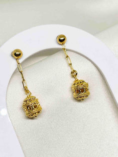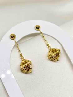 Gold plated Filigree bead hanging earrings | H 3.4cm,Ear stud | 3mm