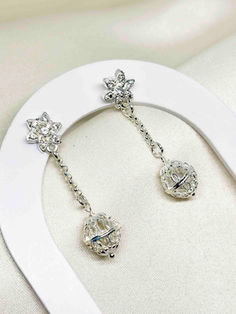 Silver-plated filigree bead earring with fixed ear stud