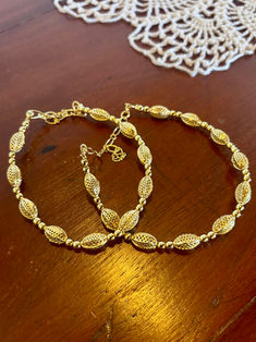 Gold plated Filigree oval bead bangle| L including extension 9”