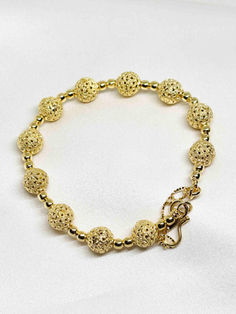 Gold plated Filigree bead bracelet | L 6.5” | “S” hook clasp with extension