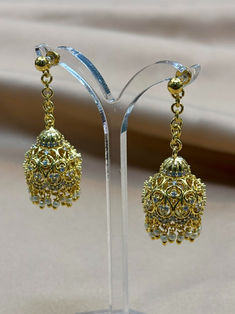Brass, Dull Gold plated Pallakkam Bead Hanging earrings | L 3.5cm