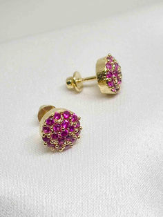 Brass, gold plated Magenta stone earrings | H 0.9mm