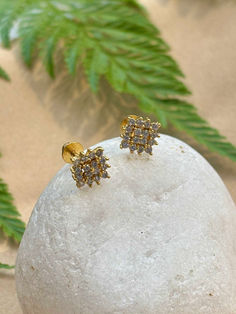 Gold plated yellow cubic zircon ear studs | H 1.3cm