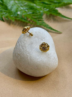Gold plated white cubic zircon ear studs | H 0.8cm