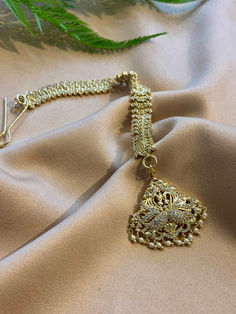 Brass Dull Gold plated Hawadiya with White stone Pallakkam beads and pearls
