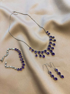 Amethyst with American Diamond mounted on Sterling Silver (SS925) set