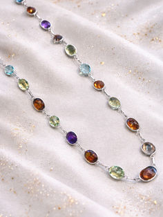Ceylon Semi -Precious stones mounted on Sterling Silver (SS925) necklace | L 20”