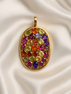 Ceylon Semi Precious stones mounted on Sterling Silver (SS925) oval pendant